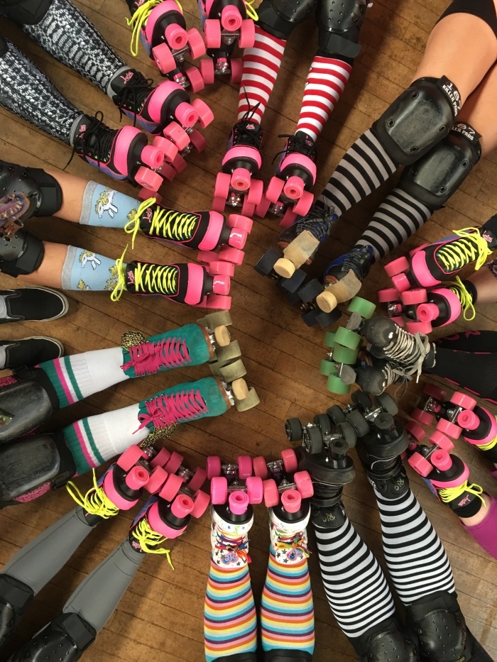 And their drive to introduce more people to the joys of life on skates has also seen them team up with their local roller derby league, to teach the basic skating skills to would-be players ahead of their minimum skills assessment.