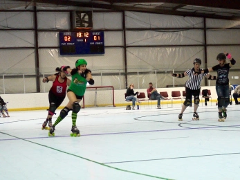 This is a jammer’s worst nightmare, especially when you’re on a team full of talented skaters all vying for those starting spots, and even when you’re as kickass as Beth. There are newbies and transfers all queuing up behind you, and you’re never 100% sure your spot is safe. Not to mention that it just plain SUUUUUCKS to miss out on the biggest bout of the season due to injury. There were no tears, or pouting, or self-imposed seclusion from our girl, but my heart hurt for her, which made the game a lot less fun. Yet there was still some good that came of it, which brings me to…