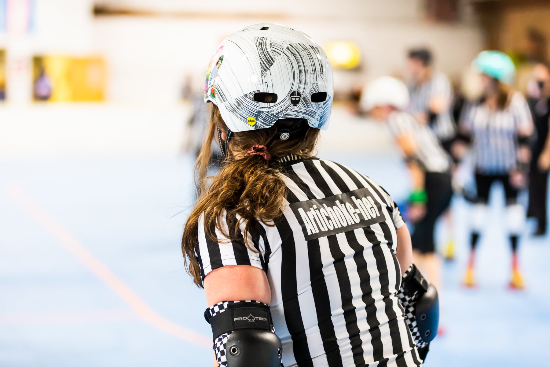 • Artie has played, refed, and NSOed roller derby since 2012. She is a RYT 200 certified yoga instructor. She has taught yoga everywhere from a studio, a distillery, to a hostel in Panama. For her day job, she works for Google as a YouTube Support Specialist.